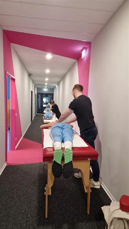 Der Samstag stand ganz im Zeichen eines ganzheitlichen Trainings- und Gesundheitsansatzes. Nach einer Trainingseinheit am Vormittag folgte ein breit angelegtes Stationsprogramm, das fachlich wie sportlich wertvolle Impulse setzte. Dazu zählten unter anderem eine detaillierte Gang- und Fußanalyse des Sanitätshauses Renovatio Mönchengladbach sowie eine professionelle physiotherapeutische Begleitung durch die KBS Akademie in Mönchengladbach. Eine Fitnessstation vermittelte die korrekte Ausführung der wöchentlichen Trainingsübungen und schuf ein gemeinsames Verständnis für die technische Qualität, die im Athletikbereich angestrebt wird. Ergänzend führten Studierende der Deutschen Sporthochschule Köln Messungen der Sprungkraft und der Sprintschnelligkeit durch – ein wichtiger Baustein, um individuelle Stärken und Potenziale sichtbar zu machen.
