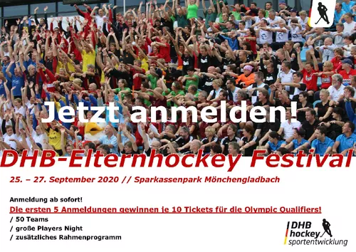 Die Anmeldung zum Elternhockey Festival 2020 ist gestartet. Vom 25. - 27. September 2020 ist es wieder soweit. Für 50 Mannschaften heißt es dann drei Tage "Spaß haben, Hockey spielen, Freunde treffen".