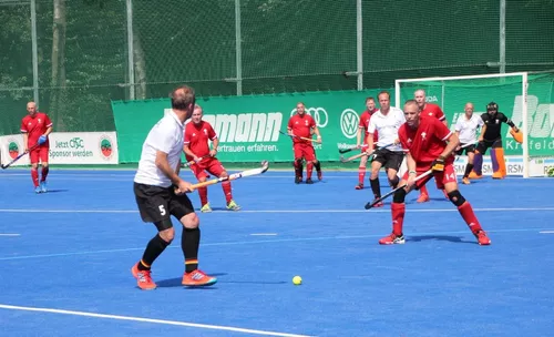 Unsere Herren M50 stehen nach 3 von 4 Spielen auf dem ersten Platz ihrer Gruppe. Nach dem 6:0 Auftaktsieg gegen Wales wurde die deutsche Elf gegen Frankreich stärker gefordert (für die Equipe Tricolore ging es bereits am alles) - das Team von Spielertrainer Marquarden löste die Aufgabe aber brilliant. Mit konzentrierten und entschlossenen Aktionen in Defensive, Aufbau und Angriff gewann man mit 4:0. Heute, bereits um 10 Uhr, freuten sich die deutschen Herren auf eine ganz besondere Herausforderung: Holland. Das Spiel endete mit einem 1:1 Unentschieden.