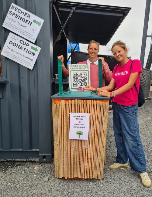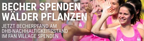 Frei nach dem Motto: „Becher spenden, Bäume pflanzen“ wurde bei den Eurohockey Championships 2025 eine nachhaltige Aktion umgesetzt. Allen Besucher*innen und Fans hatten die Möglichkeit, mit der Spende ihres Trinkbechers und damit einer Pfandspende von 2 Euro den Hockeywald der DANAS zu unterstützen.