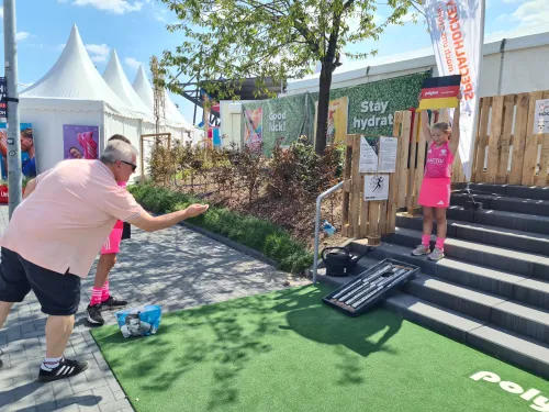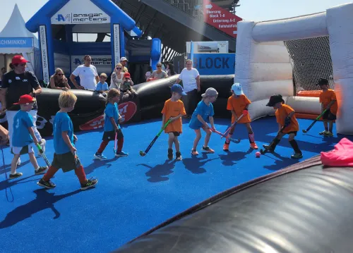 Während die großen Hockeystars bei den Eurohockey Championships 2025 in Mönchengladbach ihre Leistung auf dem Hauptplatz des Sparkassenparks zum Besten gaben, wurde im Airhockeyfeld der Kids Zone den Kleinsten eine Bühne geboten, ihr Hockeykönnen zu präsentieren.