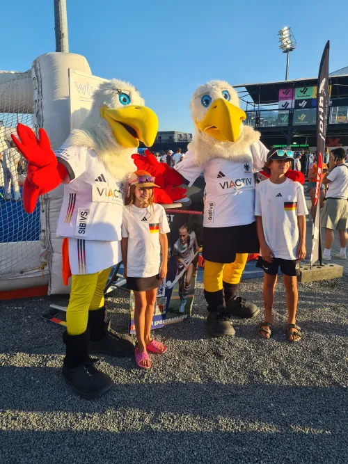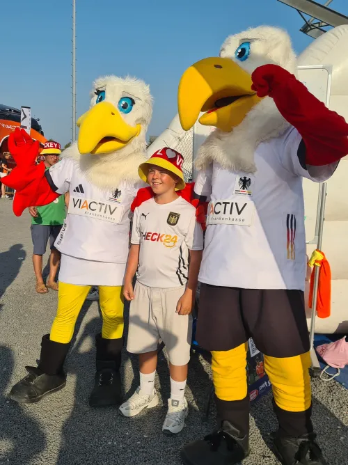 Und wer ein ganz persönliches Foto mit den beiden machen oder sich ein Autogramm von ihnen geben lassen wollte, hatte dazu jeden Tag in der Kids-Zone die Möglichkeit beim „Meet & Greet mit Schlenzi und Aggi“. Eine Aktion, die über die EM-Tage von Hunderten jungen und auch älteren Stadionbesucher*innen freudig angenommen wurde.