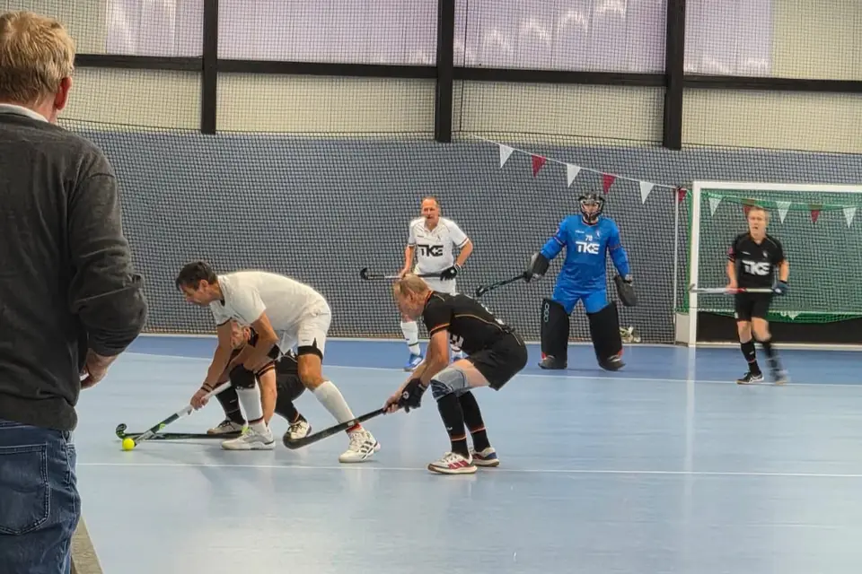 Die nächste Station ist Essen am 14. und 15. Februar 2026. Wieder voller Elan trafen sich die “Recken” am Samstag auf der schönen Anlage von ETuF in Essen, die durch Teun Hermans - Manager der Masters M65 organisiert wurde (nochmals Danke dafür!) und hatten einige Trainingseinheiten geplant. Vor allen Dingen taktische Übungen und Standards wie Strafecken mussten trainiert werden, da ja viele nicht im Verein zusammen spielen. Abschließend standen dann noch Trainingsspiele gegen die M65 an, die “gespickt” mit Alt - Internationalen sowohl aus dem ehemaligen “Osten” und “Westen” auftraten und es uns sehr, sehr schwer machten, unsere trainierte Taktik im Spiel umzusetzen. Kurz gesagt, sie waren einfach besser und gewannen beide Spiele dank guter Taktik, gutem Spielverständnis untereinander und großer Erfahrung!