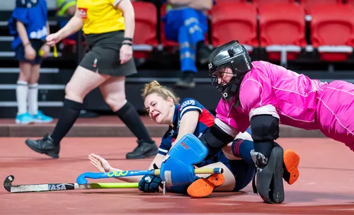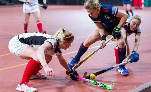 14.02.2020 — Die Damen des Düsseldorfer HC, Deutscher Meister von 2019 und jüngst Vizemeister in einem packenden deutschen Finale gegen den Club an der Alster, steht nach zwei Siegen am ersten Turniertag bereits vorzeitig im Halbfinale des Charlie works EuroHockey Indoor Club Cup 2020 im niederländischen Den Haag. Am Samstag geht es im dritten und abschließenden Gruppenspiel gegen den HC Minsk um den Gruppensieg. (Fotos: worldsportpics.com)