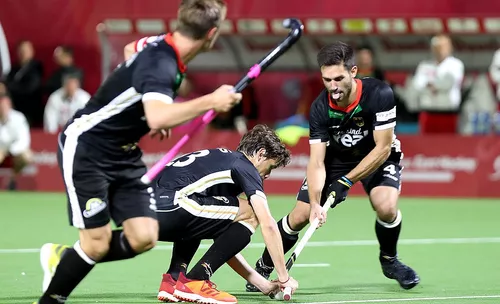 Das DHB-Team spielte geduldig Ballbesitz-Hockey zu Beginn des dritten Viertels, Rühr hatte eine gute Chance links im Kreis, traf den Ball aber nicht voll. Dann gab es die erste Ecke für Oranje (34.), die Timur Oruz bärenstark ablief. Es war weiterhin ein Match absolut auf Augenhöhe. Beide Teams lauerten auf Fehler des Gegners, um sie zu bestrafen. Dan Nguyen wurde bei einem Schussversuch im Strafraum umgerannt, aber es gab keine Ecke dafür (38.).