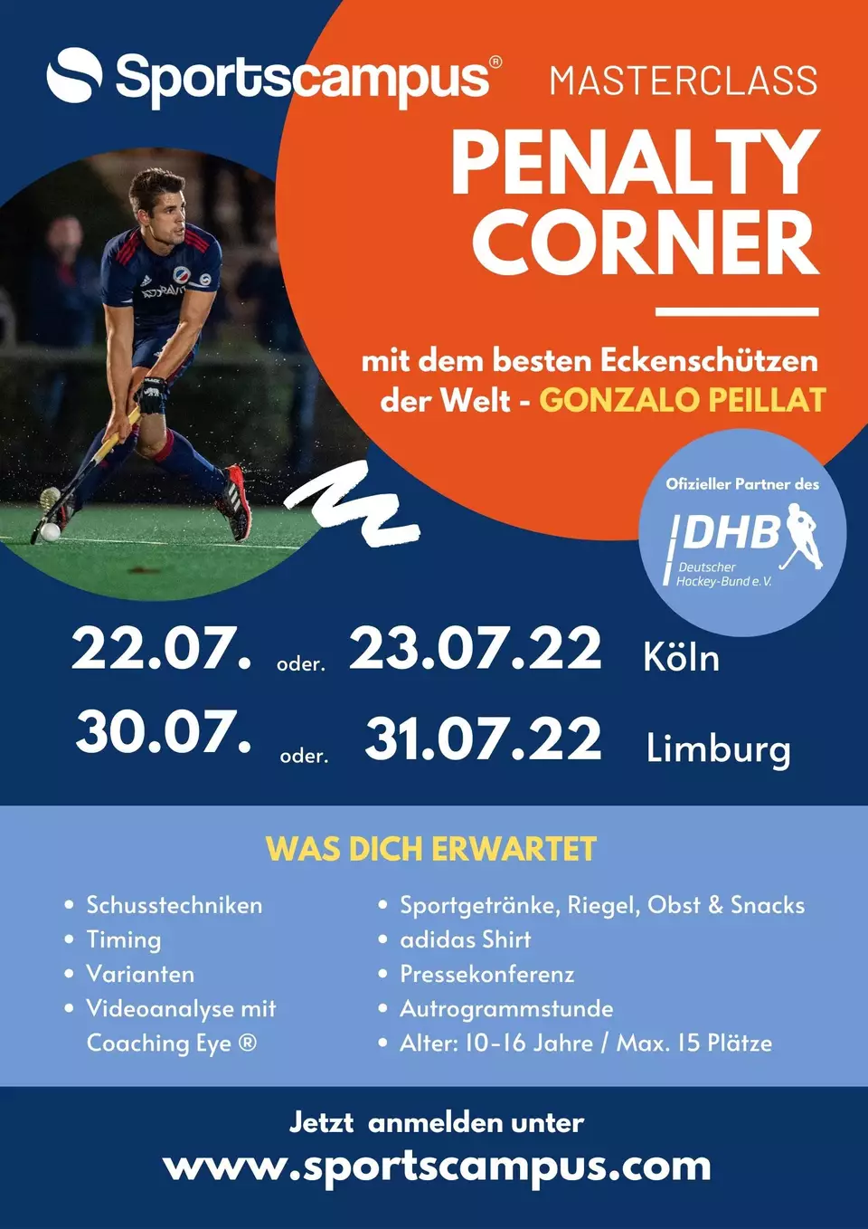 Ein besonderes Highlight bei den Hockeycamps sind die Sportcampus Masterclasses zur Strafecke mit Gonzalo Peillat, dem besten Eckeschützen der Welt. Am 22.07. oder 23.07. in Köln und am 30.07. oder 31.07. könnt ihr vom deutschen Nationalspieler lernen. Seid dabei!