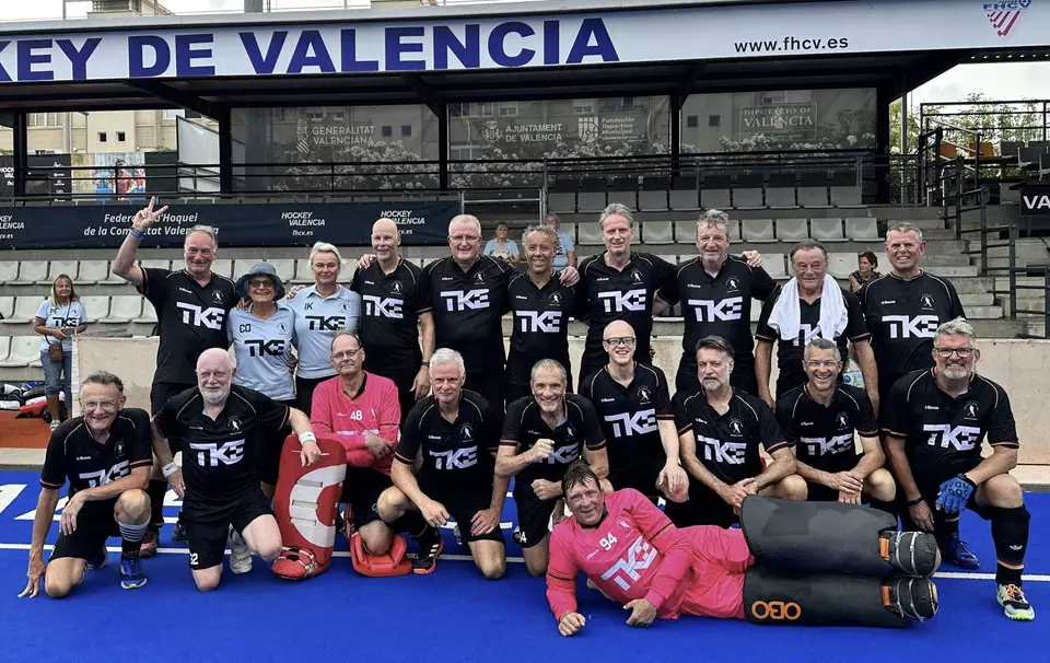 5.30 Uhr wachwerden, 6.30 mit dem Fahrrad zum Platz, denn um 8.00 Uhr geht es gegen die Scottish Thistles 55. Um die Chance aufs Finale aufrecht zu erhalten ist ein Sieg Pflicht. Das merkt man dem Team auch an, so richtig kommen wir zunächst nicht ins Spiel. Das Ganze ist unruhig, fahrig und ungenau. Die Schotten sind wie Briten nun einmal so sind, griffig, bissig und körperlich. Trotzdem schaffen wir es ihre Angriffe, auch durch die hervorragenden Torhüter, Dirk Kaltenbach und Bernd Phillip, unbeschadet zu überstehen. Leider sorgen die beiden Schiedsrichterinnen für Farbe im Spiel, und das erstaunlicherweise bei gleichen Sachverhalten immer nur gegen das deutsche Team; aber was nutzt das Lamentieren. In der 56. Minuten eine gelbe Karte gegen uns, aber wir bleiben auf Angriff fokussiert und bekommen in der 58. Minute eine kurze Ecke zugesprochen. Zwar kann der Schuss vom schottischen Torwart noch pariert werden, aber gegen den Rebound von Ernst Neuland gibt es kein Halten mehr; 1:0 für uns. Anschließend bringen wir das Spiel noch über die Zeit und gewinnen. Großer Dank an unsere Interims-Trainerin Corinna Bremer. Da die Niederländer gegen Spanien nur 0:0 spielen, müssen wir morgen um 10.00 Uhr gegen Alliance 55 gewinnen und würden damit ins Finale am Sonntag einziehen. (JP)