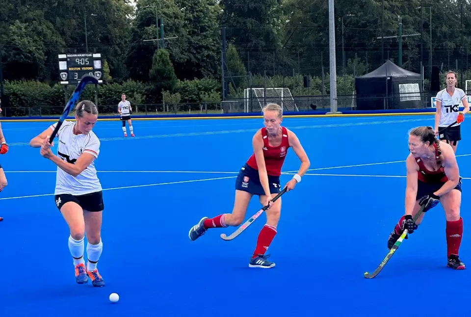 Am ersten Turniertag bei der European Championship im englischen Nottingham haben die deutschen Teams keine Gelegenheit sich zu akklimatisieren und müssen gleich zu ihrem ersten Spiel antreten. Als erstes müssen die Damen der W35 gegen die Niederlande mit geliehenen Schlägern und Schuhen spielen, weil die Luftfahrtgesellschaft es nicht geschafft hat, die Schlägertaschen rechtzeitig mitzubefördern.