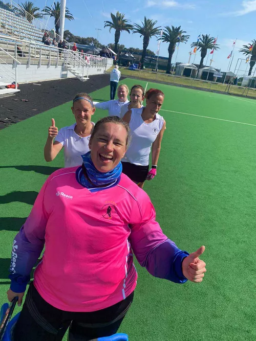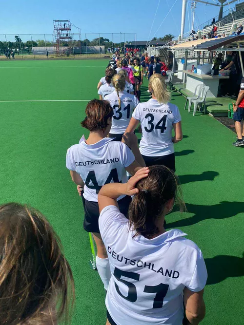 Endlich durften wir W 55er unser 6. Spiel heute gegen ein Team aus einem anderen Kontinent bestreiten. Wir freuten uns auf die Begegnung mit den Gastgeberinnen aus Südafrika und starteten hochmotiviert. Nach einem 0:2 zur Halbzeit kämpften wir uns noch auf 1:2 heran, verstärkten weiter die Offensive und verloren das Spiel durch einen 7-Meter und einen Konter 1:4. Damit haben wir leider das Spiel um Platz 5 verpasst und kämpften am heutigen Sonntag gegen Frankreich um Platz 7. Unser Trainer Peer hatte uns taktisch gut eingestimmt, damit uns gegen die Französinnen die Revanche für die Niederlage im Gruppenspiel gelingt. Und im Frankreich-Spiel hat das Team dann ein wenig den Frust von der Seele gespielt: am Ende hieß es 8:0 für die deutschen Malanas und damit in der Endplatzierung ein 7. Platz im Turnier.