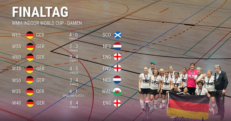 Als nur noch wenige Sekunden auf der Uhr standen, entschied der Schiedsrichter nochmals auf Strafecke für Deutschland – diese und die Folgeecke (nach Ende der regulären Spielzeit) fanden leider nicht mehr den Weg ins gegnerische Tor. Holländischer Jubel und Enttäuschung auf der deutschen Bank beendeten das W55-Finale der Hallen-WM.