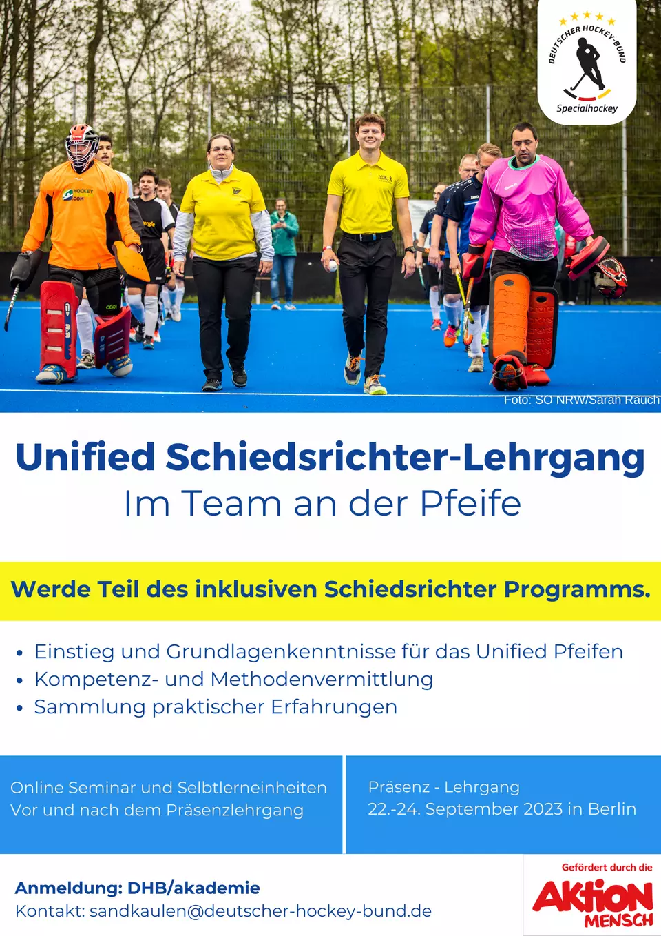 Wir starten gemeinsam mit einem Online Seminar, das einen leichten Einstieg in das Thema Schiedsrichterwesen im Specialhockey bietet. Daran schließt ein Präsenz-Lehrgang am 22./23. September 2023 in Berlin an. Im Nachgang werden die gesammelten Erfahrungen in einem weiteren Online Seminar zusammengetragen und findet ein Ausblick statt.