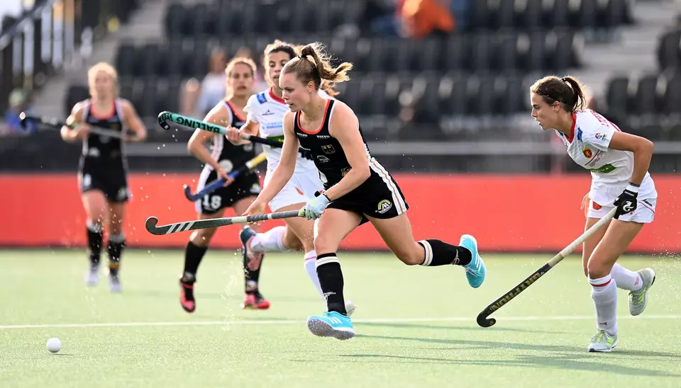 Das dritte Viertel lief wieder ohne große Chancen an, aber das deutsche Pressing funktionierte gut, so dass schon bald Pauline Heinz die nächste Großchance hatte, die Spaniens Keeperin vereitelte. Eine erste spanische Ecke ging klar am DHB-Tor vorbei. Bei einem guten Angriff der Gastgeberinnen war Noelle Rother dann zur Stelle (38.). Nach einem starken Diagonalball von Nike Lorenz kam Elisa Gräve frei zum Schuss, doch auch sie scheiterte an der Torfrau.
