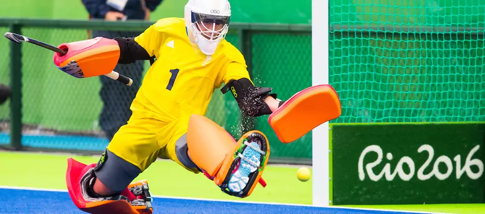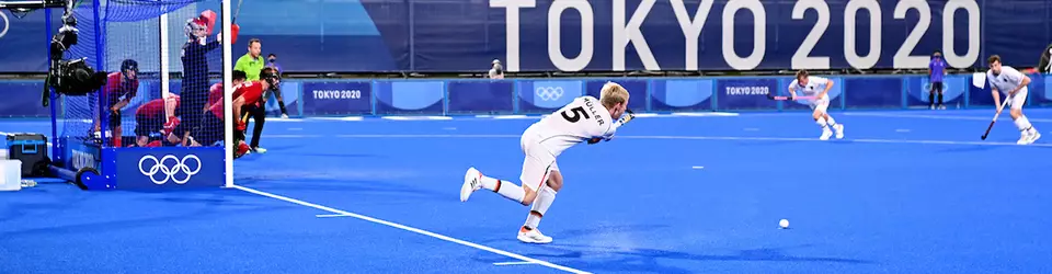Beim olympischen Feldhockey stehen sich zwei »Mannschaften für 4 × 15 Minuten gegenüber. Beide Teams versuchen, mit am Ende gekrümmten » Schlägern den » Ball ins » Tor der gegnerischen Mannschaft zu schlagen (» Torschuss). Tore zählen nur, wenn die angreifende Mannschaft den Ball im halbkreisförmigen » Schusskreis regelkonform berührt hat. In K.-o.-Spielen folgt nach Unentschieden in der regulärer » Spielzeit ohne Verlängerung gleich ein » Shootout.