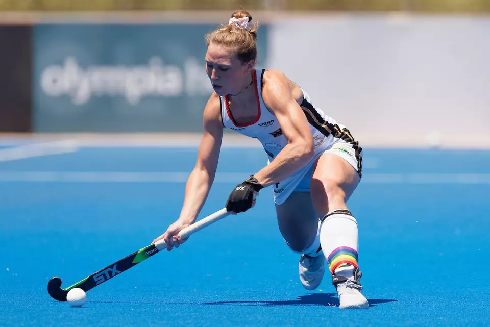 Nike Lorenz wird zum Auftaktspiel gegen Großbritannien am Sonntag mit den Regenbogenfarben an den Stutzen auflaufen.