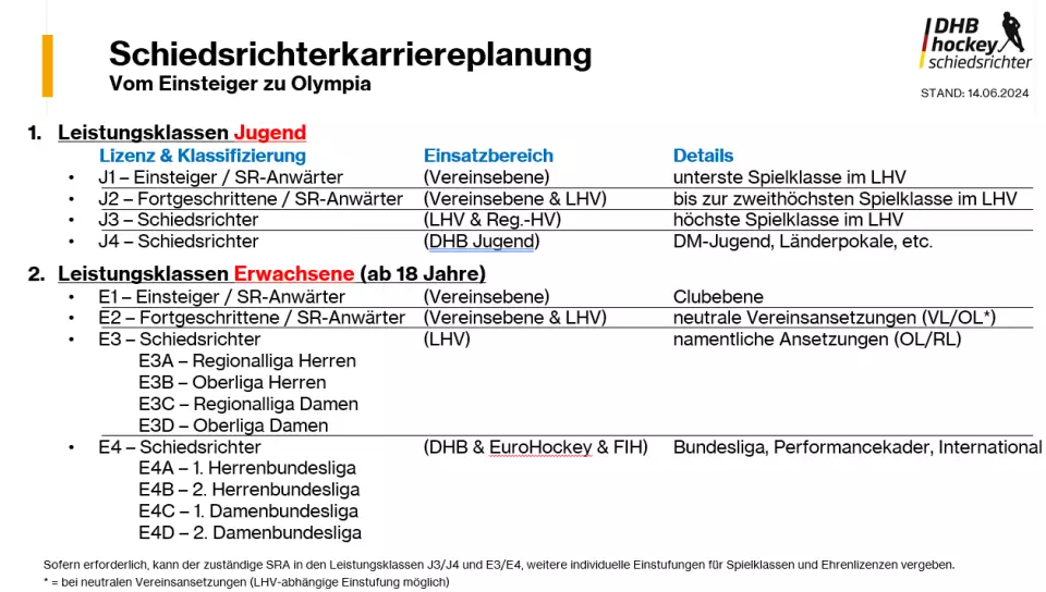 Der Schiedsrichter- und Regelausschuss des Deutschen Hockey-Bundes e.V. hat mit dem Aufbau der digitalen Lernplattform "RefStart" auch das Lizenzystem der Landesverbände und der DHB vereinheitlicht. Die aktuelle Version kann unter u.g. Link runtergeladen und eingesehen werden.
